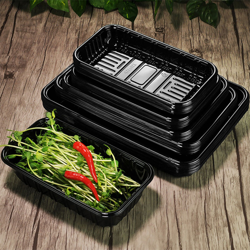Nossas bandejas e caixas plásticas descartáveis podem ser amplamente utilizadas em supermercados para a venda pré-embalada de legumes frescos, frutas, carne, frutas secas, biscoitos e outros produtos.