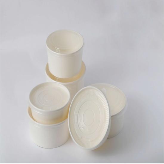 Tigela de papel biodegradável PLA ecologicamente correta com tampas.