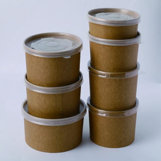 Soonn Tigela de papel Kraft descartável com preço de fábrica com tampas para salada / macarrão / panela quente / sopa / sobremesa e outras embalagens de alimentos.