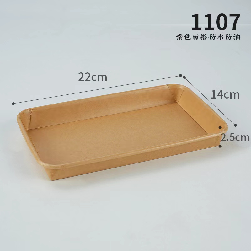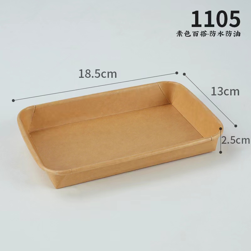 Novos produtos da nossa empresa ---- Bandeja de papel Kraft descartável É usado principalmente para embalagens de sushi/salada/bento/frutas/pastelaria e outros produtos. Adota papel Kraft de alta qualidade, não quebra facilmente.​