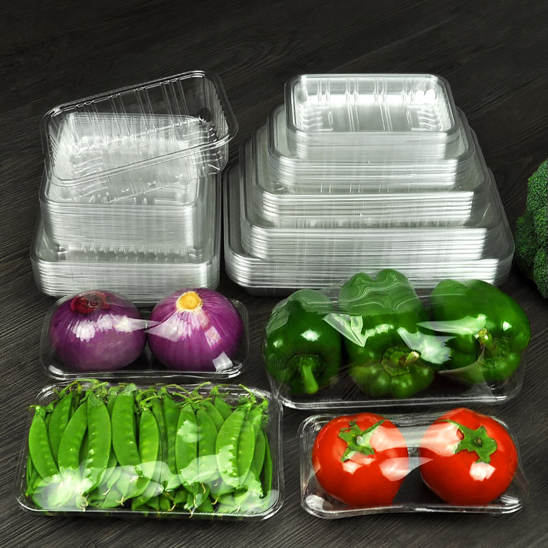 Matérias-primas de qualidade alimentar transparentes ou pretas PET Vegetais Frutas Alimentos descartáveis ​​Bandeja profunda Bandeja de embalagem de plástico