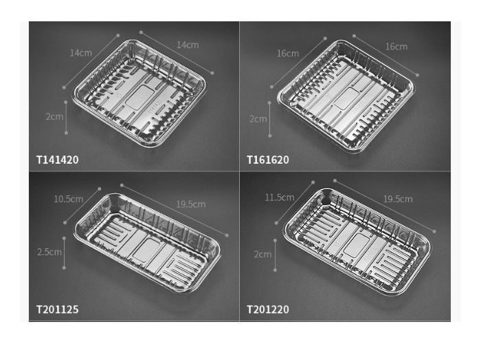 Bandeja Descartável para Supermercado Preto Carne Preta Plástico PET Vegetal Carne Peixe Frango Bandeja. Bandeja plástica descartável personalizada do produto comestível do supermercado do PET para a embalagem da carne.​