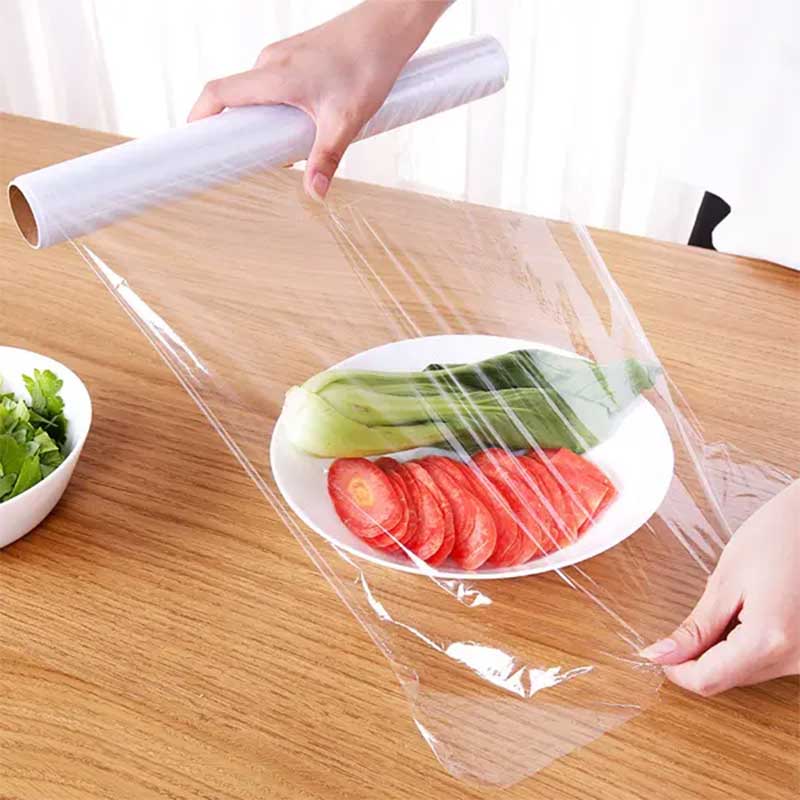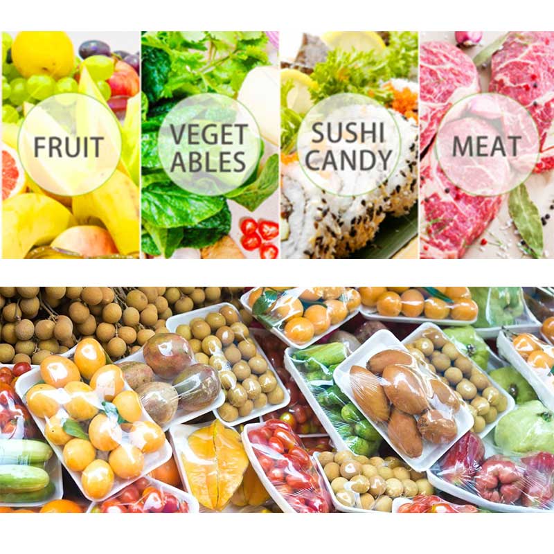 Se os alimentos forem mantidos frescos, é necessário usar filme plástico próprio para alimentos.