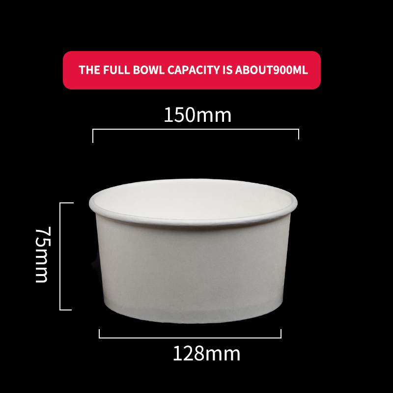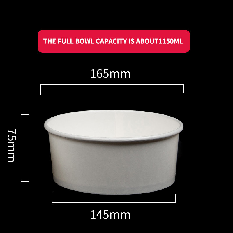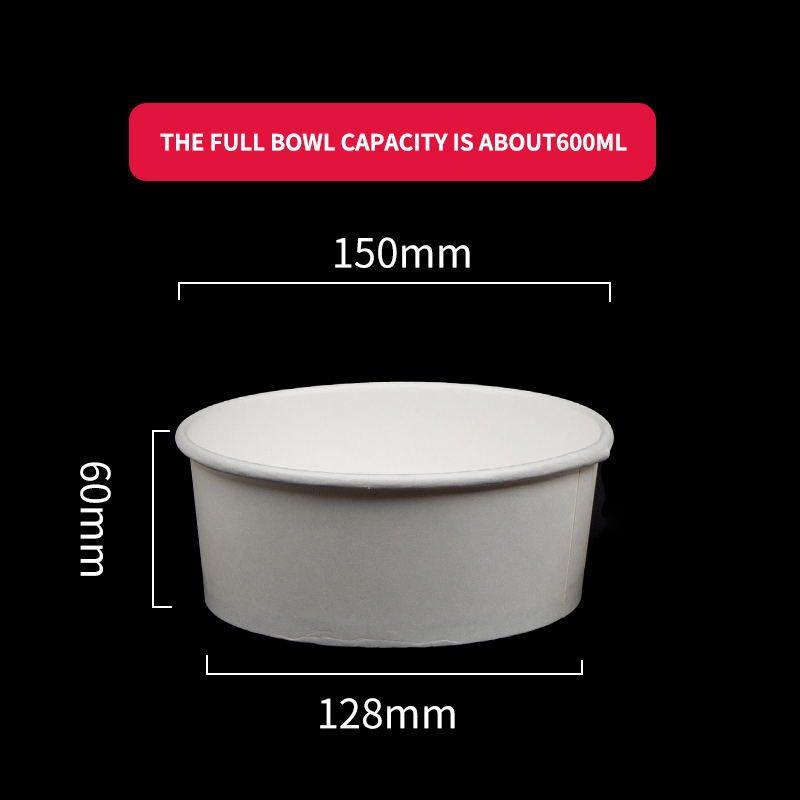 Tigela de papel branco redonda descartável de qualidade alimentar